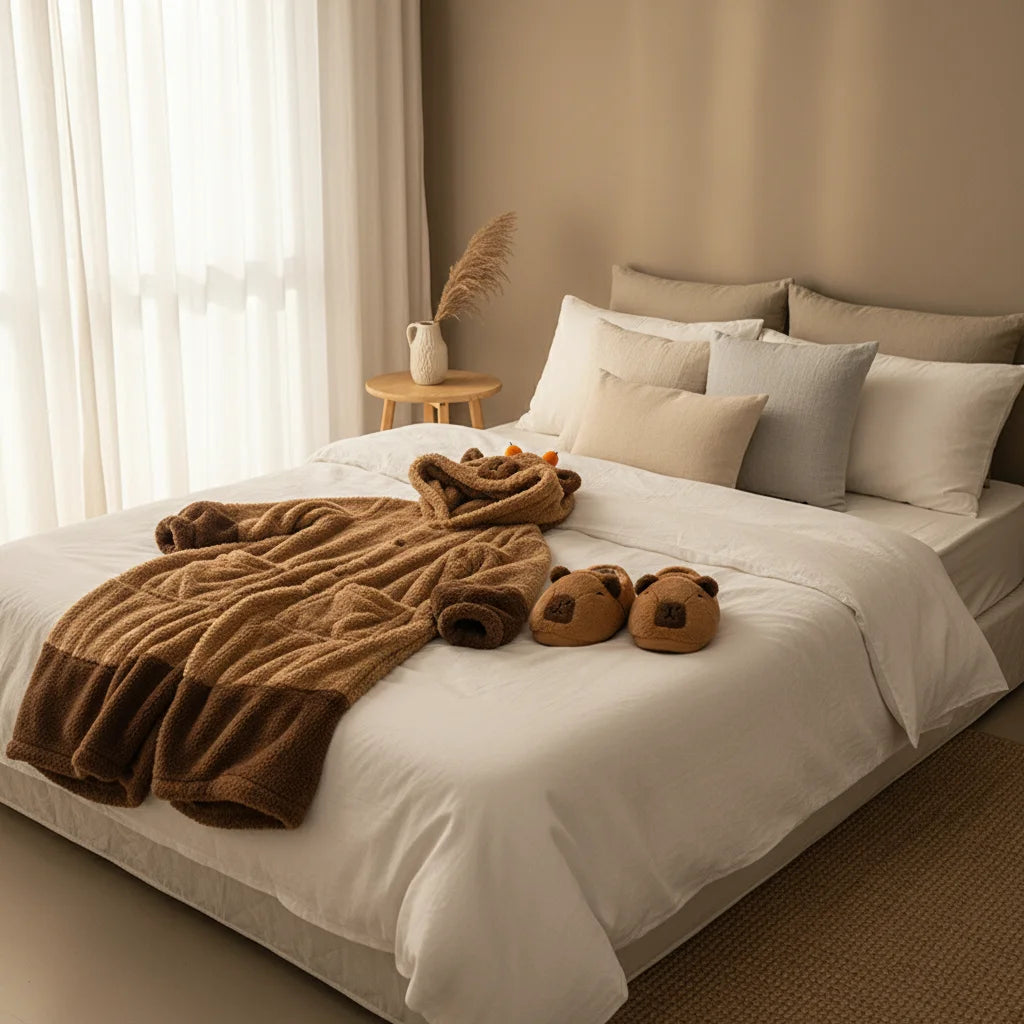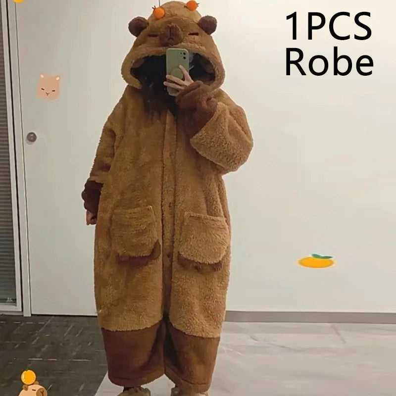 Cozy Capybara Robe Kigurumi - Plush Lounge Onesie