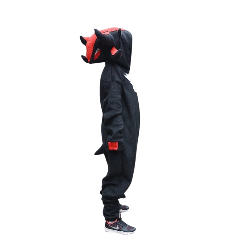 Get ready to impress! Our Dark Rival Kigurumi features an iconic white emblem, cute ears, and striking red accents, ensuring you embody your playful character with spot-on style and whimsical charm. It's all about bringing your favorite character to life.